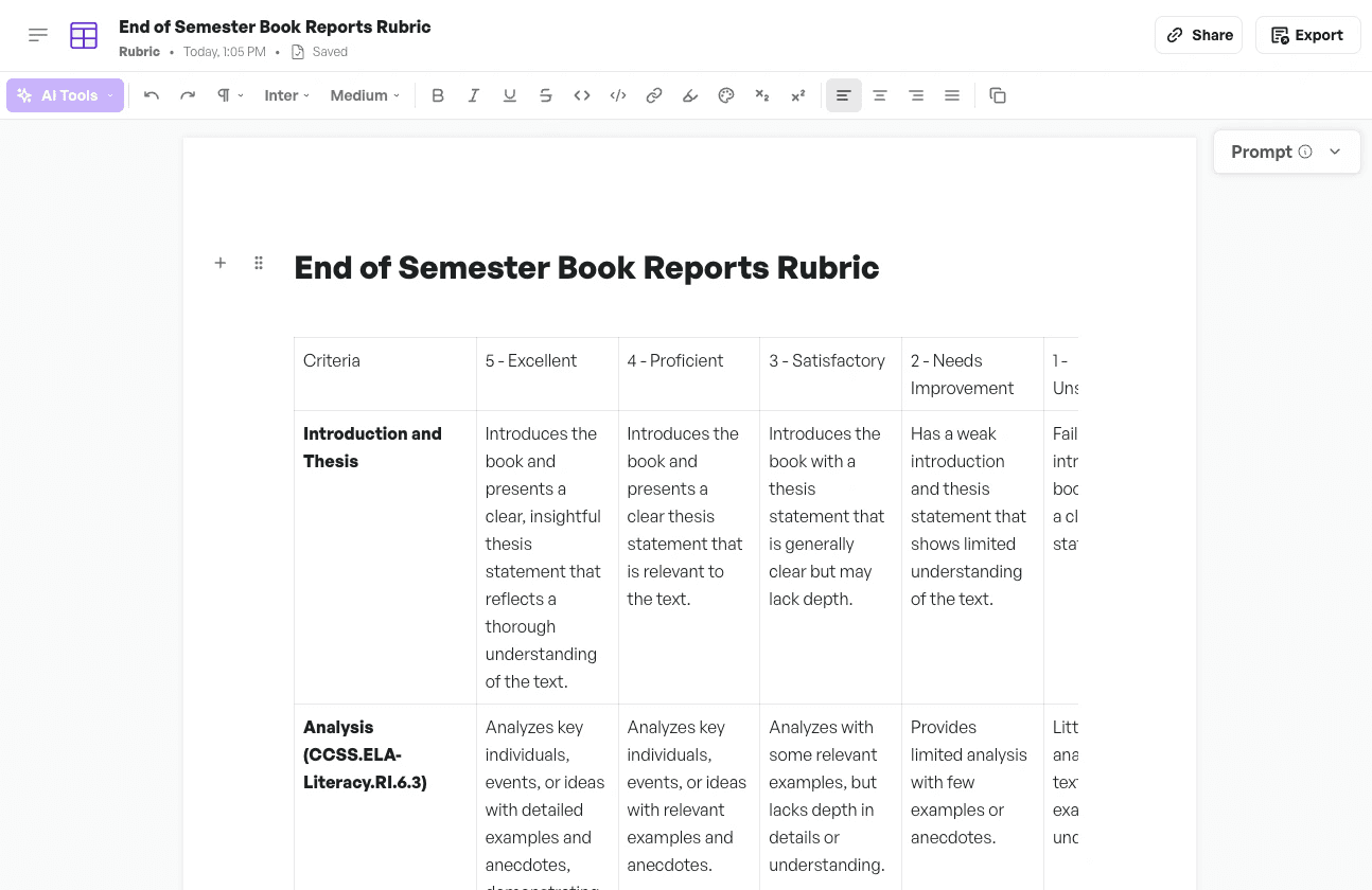 Create rubrics & assessment tools in minutes