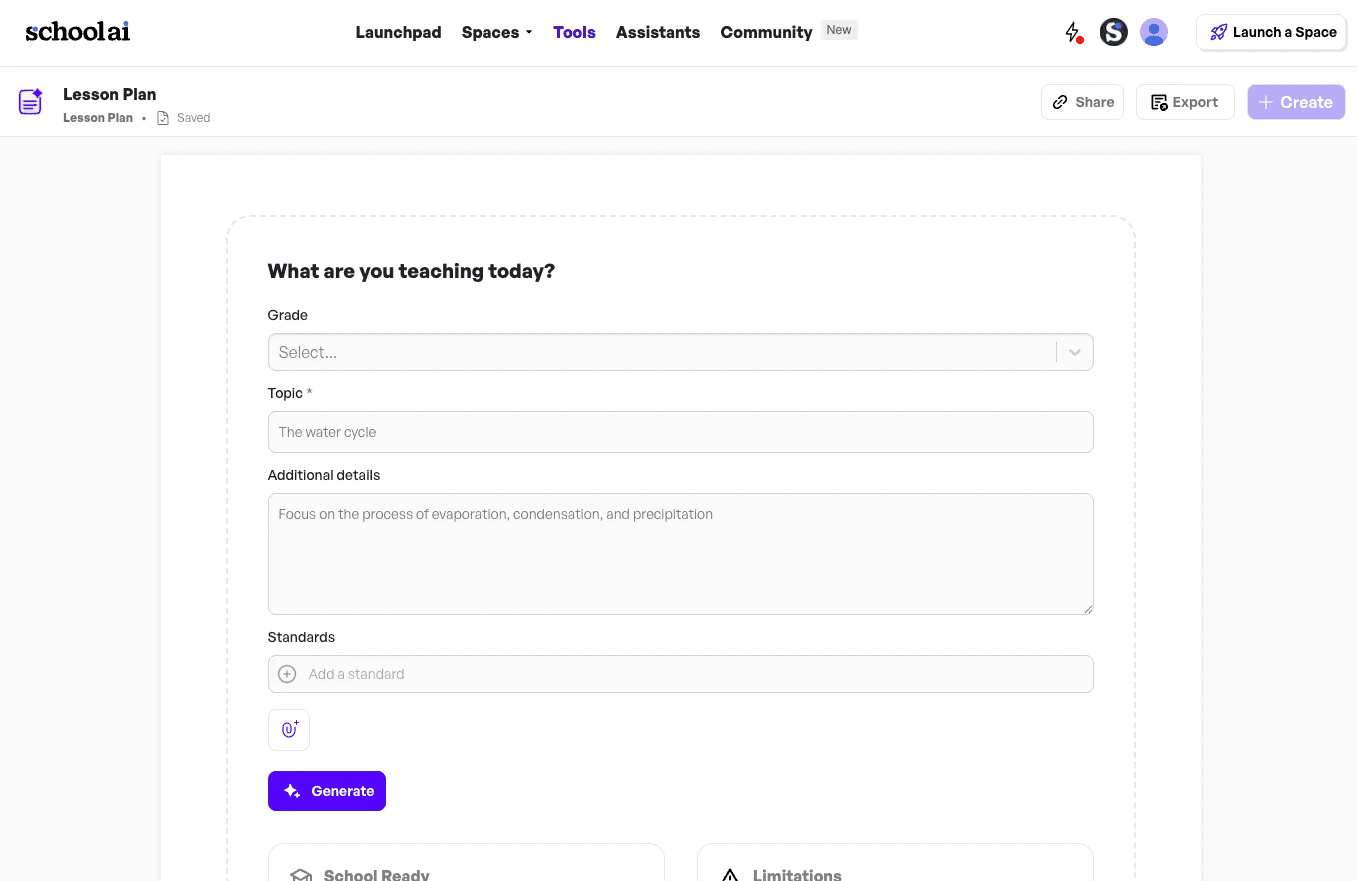Create engaging, standards-aligned lesson plans, worksheets, and more in minutes.