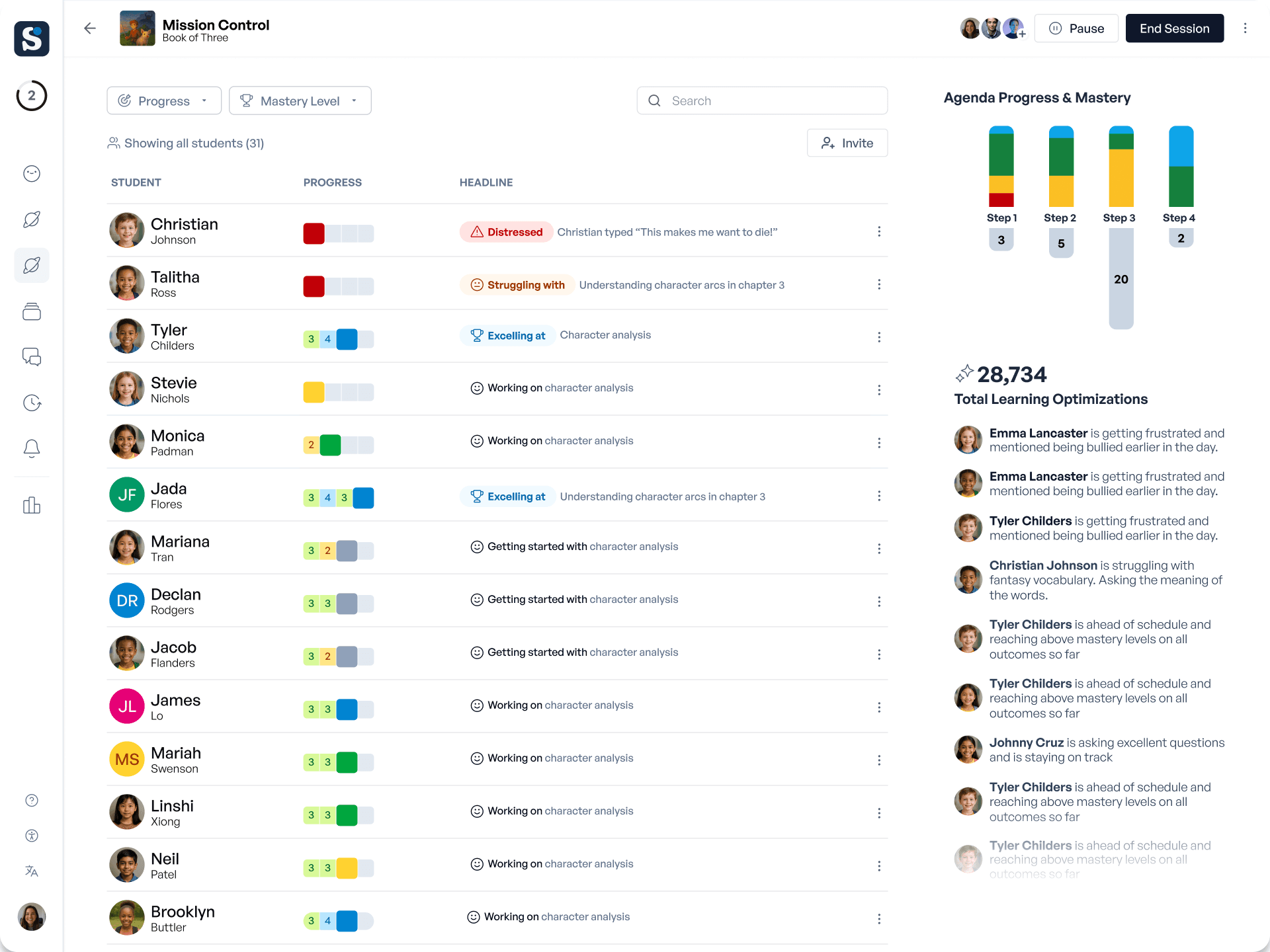 Mission Control shows you exactly what's happening as students work. Identify misconceptions immediately, spot students who need intervention, and adjust your teaching on the spot, not after the test.