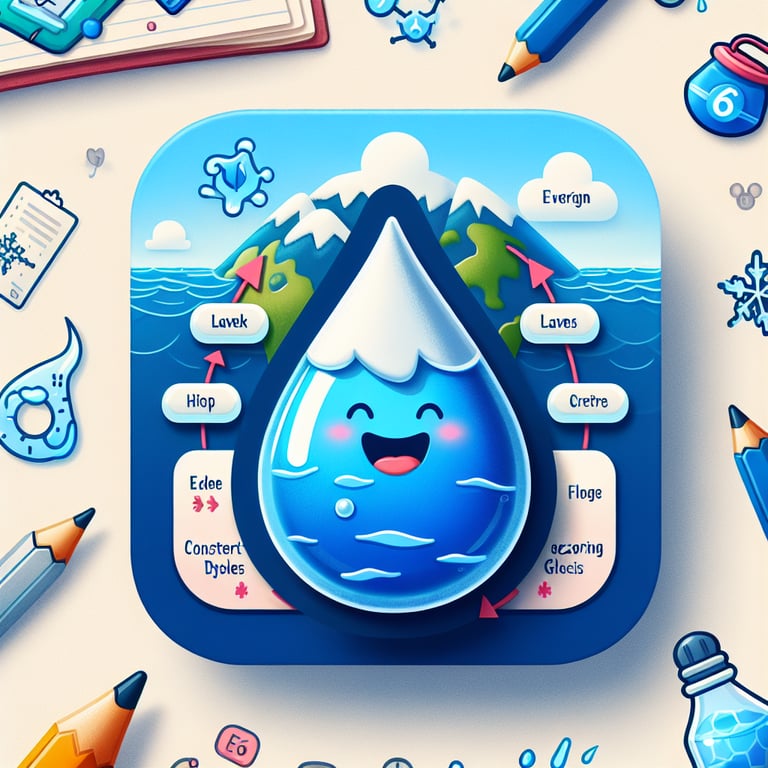 Embark on a hydrological adventure with 'A Drop in the Water Cycle - Choose your own Adventure!' This space provides 6th grade students with an engaging way to learn about the water cycle. As a personified water droplet, you'll guide students through the different stages of the cycle, teaching them essential vocabulary and concepts along the way. They will explore various states of matter and learn about environmental processes through interactive storytelling.